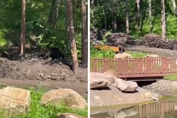 Медвежонок вышел к пруду в красноярской «Гремячей гриве»