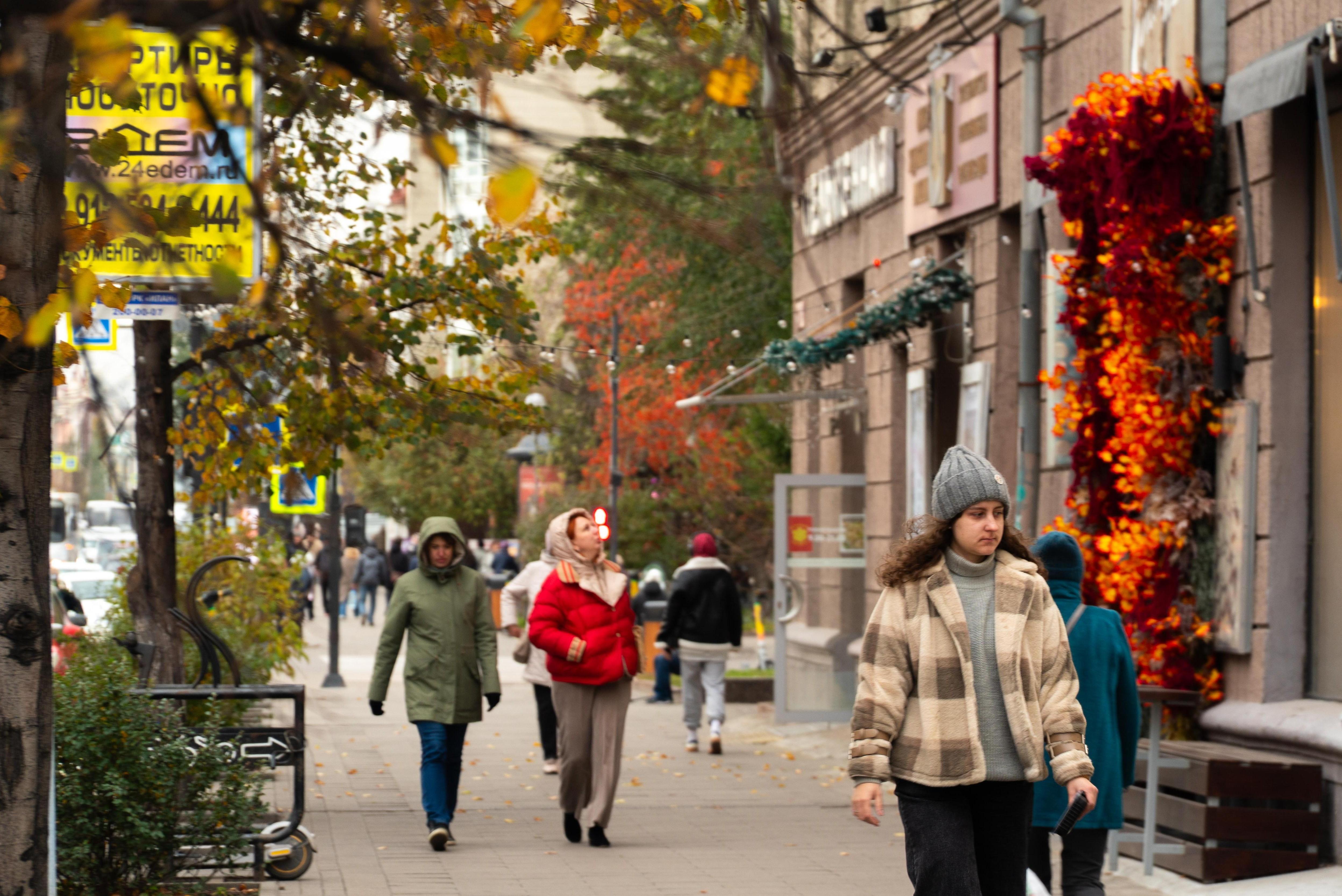 Красное на сером: как красноярцы оделись перед приходом холодовИщите себя в нашем фоторепортаже