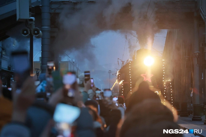 В Красноярск утром 5 декабря приехал поезд Деда Мороза. На вокзале его встречали сотни людей, передают корреспонденты NGS24.RU с места событий.