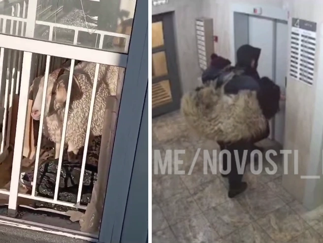 В Черемушках камера наблюдения внутри дома записала странную сцену: в подъезд зашла пара, у мужчины через плечо висел огромный связанный за ноги баран. Животное мотало головой. Пара зашла с ним в лифт.