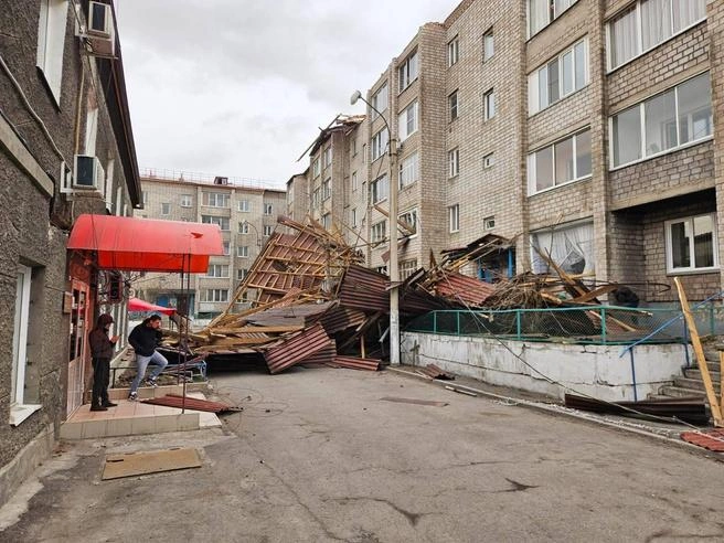 Крыша многоэтажки на Северо-Енисейской рухнула на мужчину. Кровля обрушилась при очередном порыве ураганного ветра. Мужчину доставил из-под завалов и госпитализировали в БСМП. Тяжесть ранений полицейские еще устанавливают.