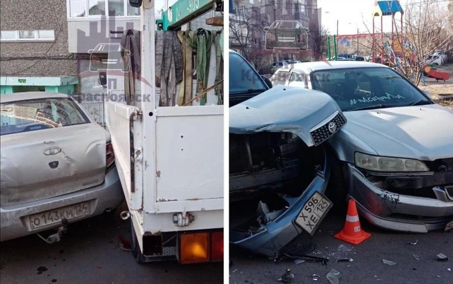 Грузовик повредил два автомобиля