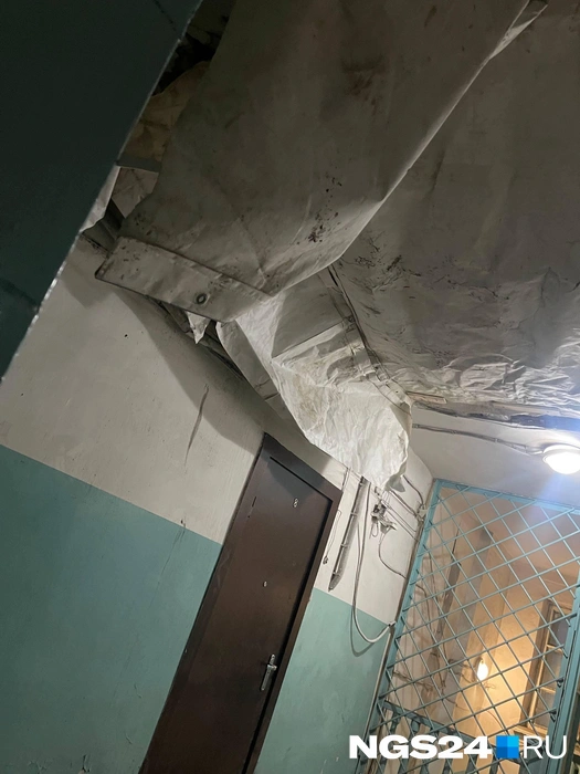 В течение двух дней в подъезде должны восстановить тепловой контур. Саму дыру в потолке временно прикрыли брезентом.