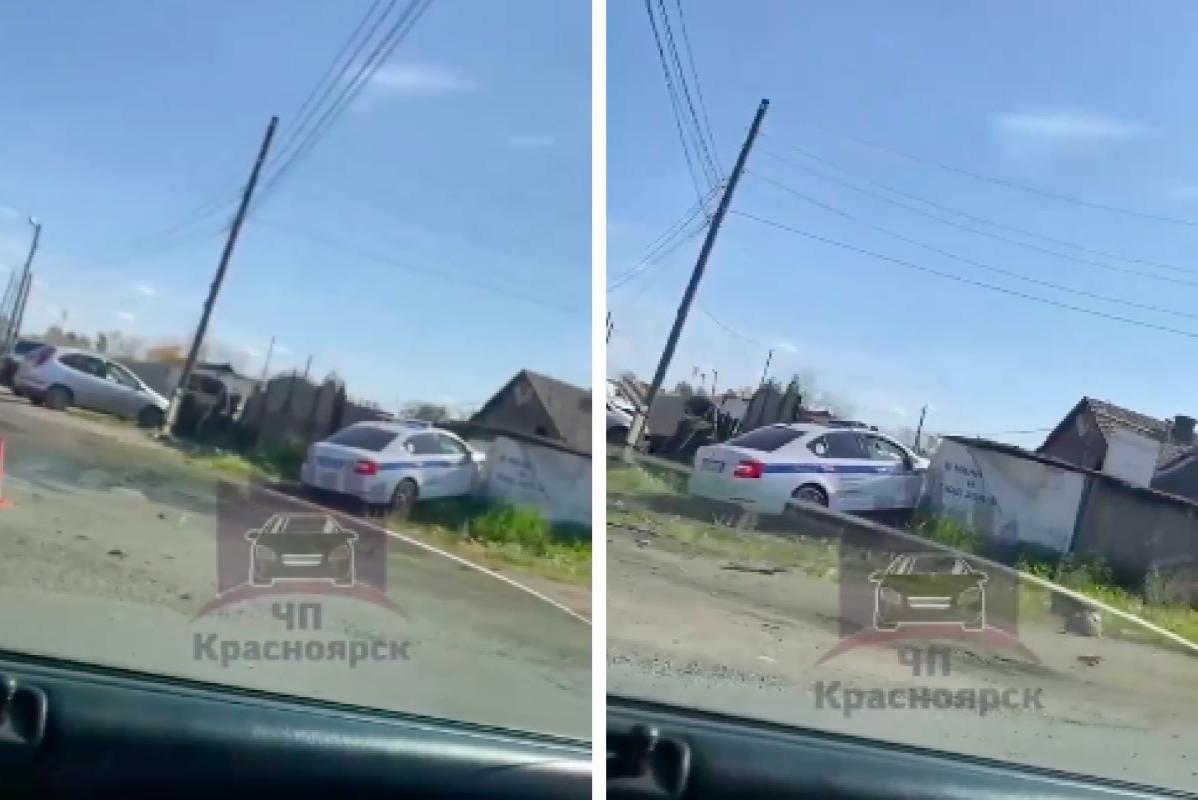 Здесь нельзя парковаться: под Красноярском машина ГАИ влетела в забор на перекресткеПеред этим она врезалась в «Мазду»