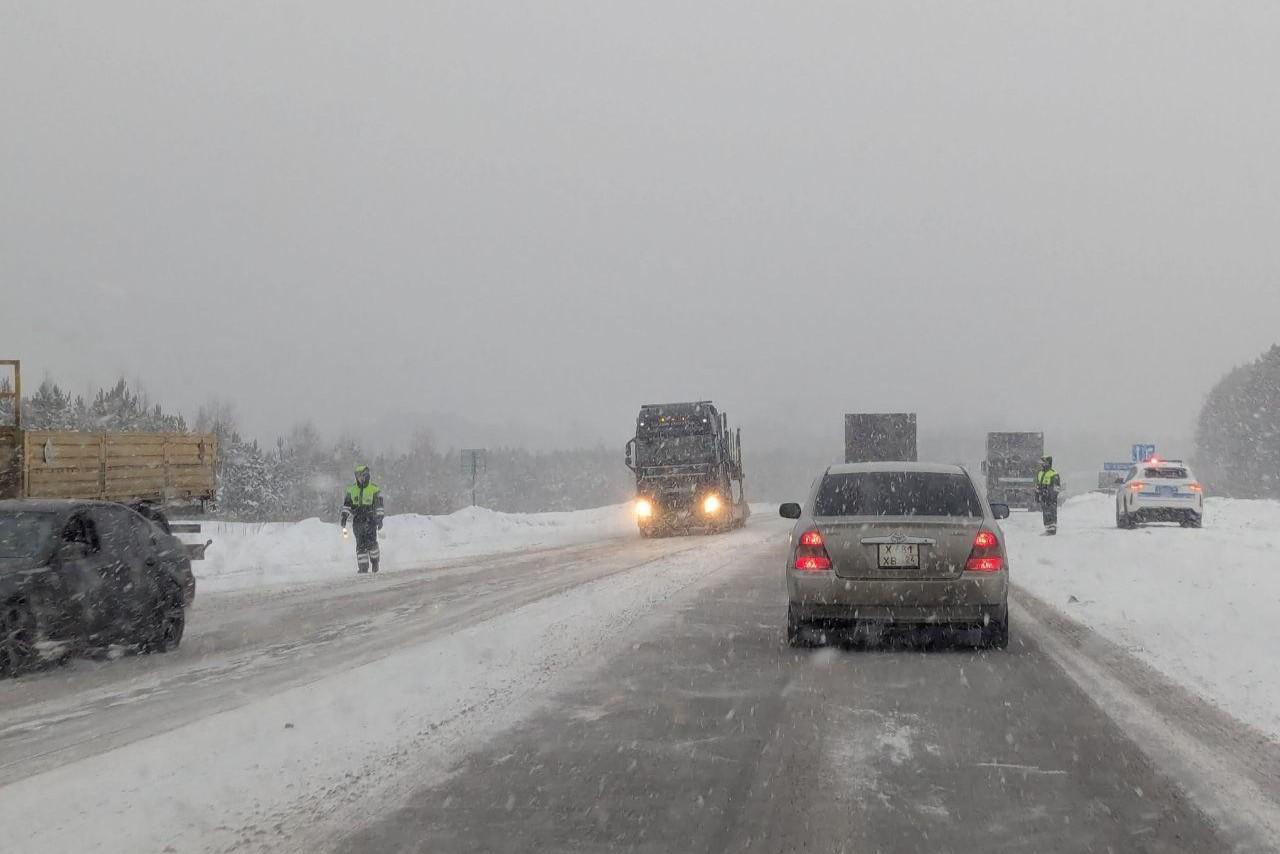 На трассе Красноярского края проверяют фуры. Связано ли это с гибелью четверых детей в ДТП?Погодные условия сегодня не самые лучшие