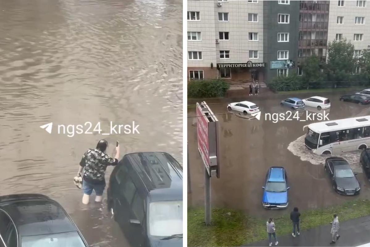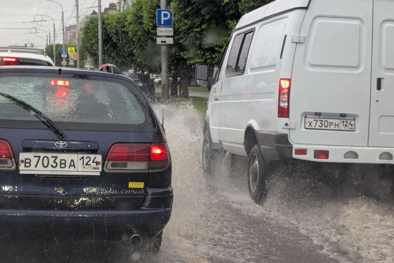 «Тачка немного утонула»: что натворил сильный дождь в Красноярске — видеоГород остался без дорог, а его жители — без авто