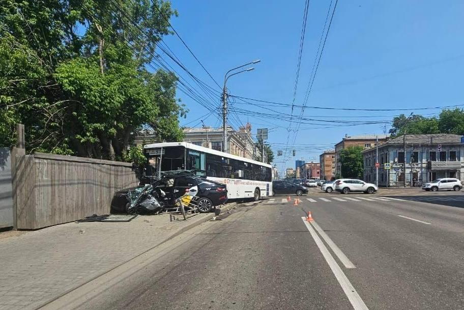 В центре Красноярска автобус протаранил таксиПо предварительным данным, есть пострадавшие