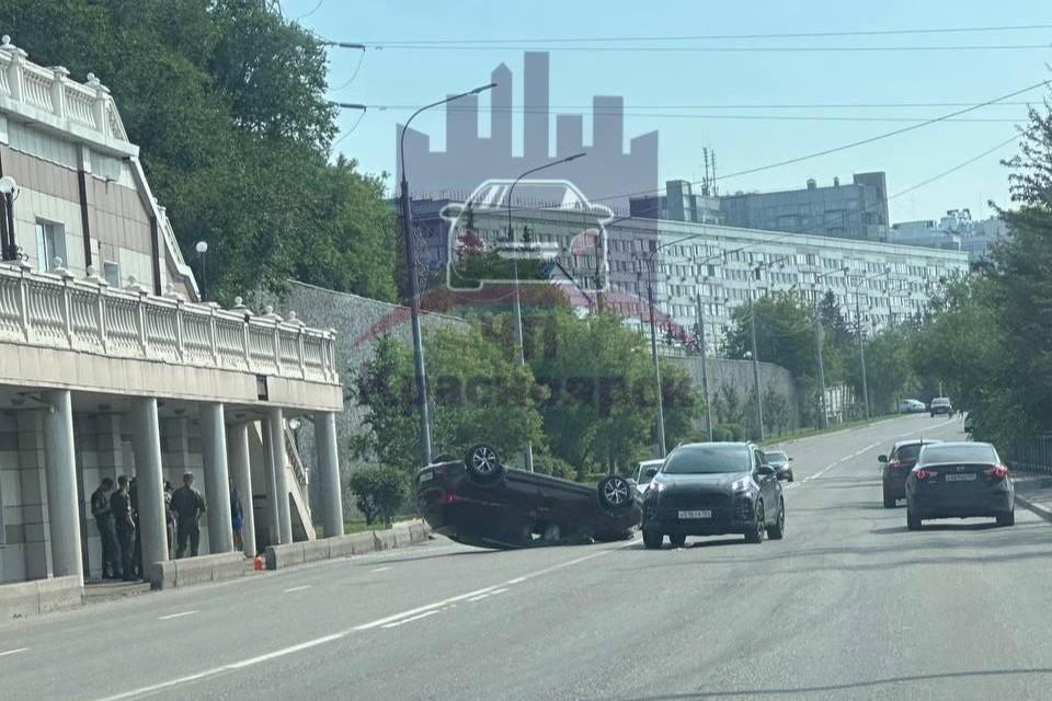 Возле виадука на Дубровинского перевернулся автомобильВозможно, машина налетела на бордюр